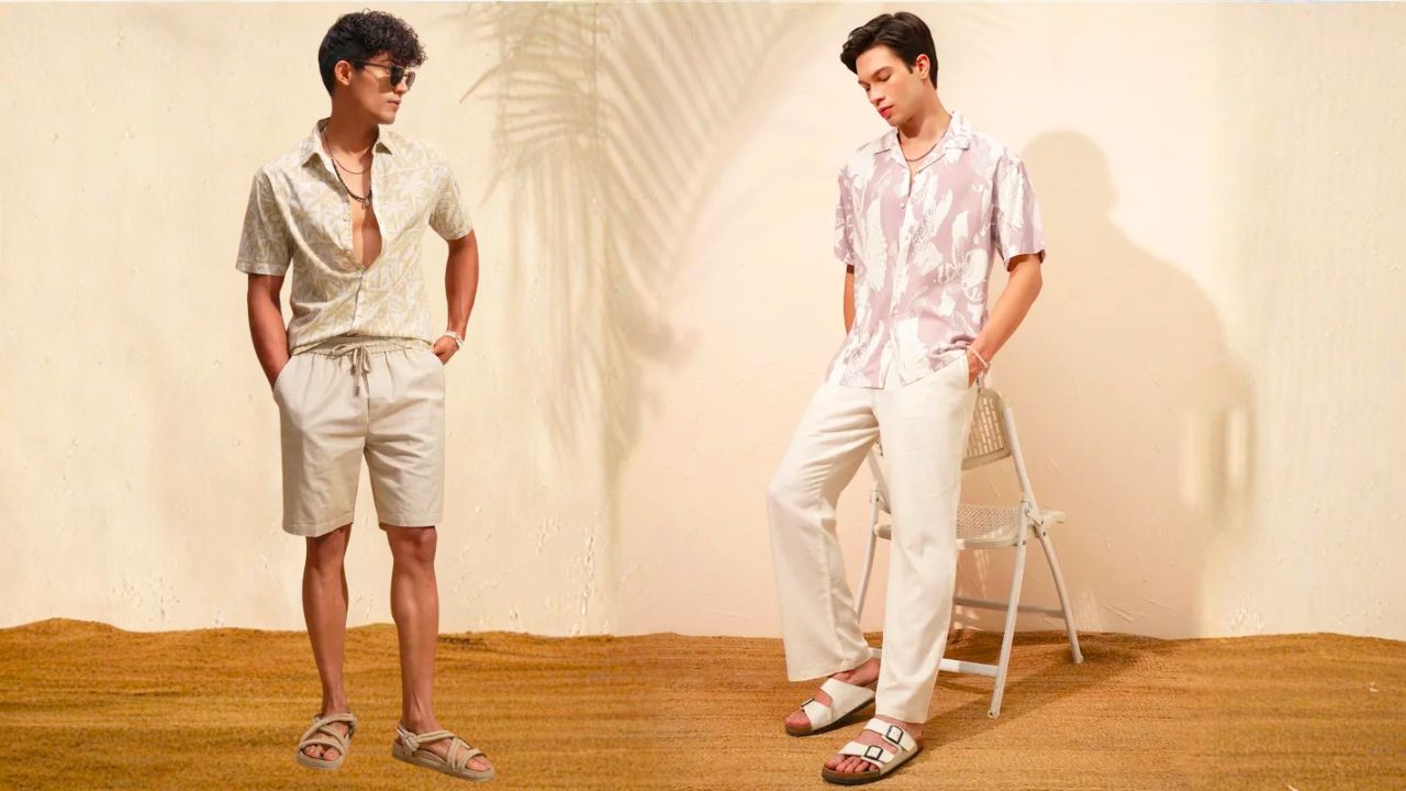It’s all about conversation and comfort—printed loose shirts with shorts or relaxed pants, your call.