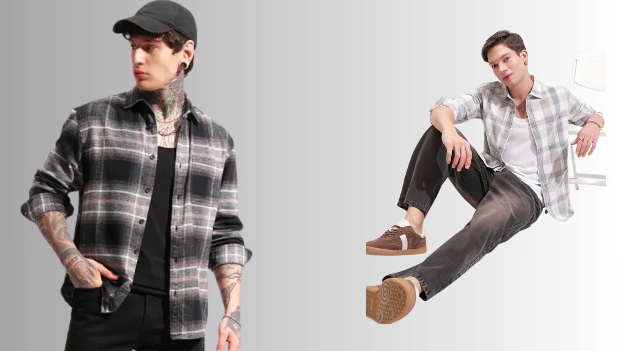 Keep it simple, stylish, and true to your down-to-earth vibe. Pair a dark-shaded checked shirt with black jeans, or go for a big square-checked shirt in a light, earthy tone—both look great with black jeans. You don’t need heavy accessories for this look. Just add a smart watch, clean sneakers, glasses, and a stud.