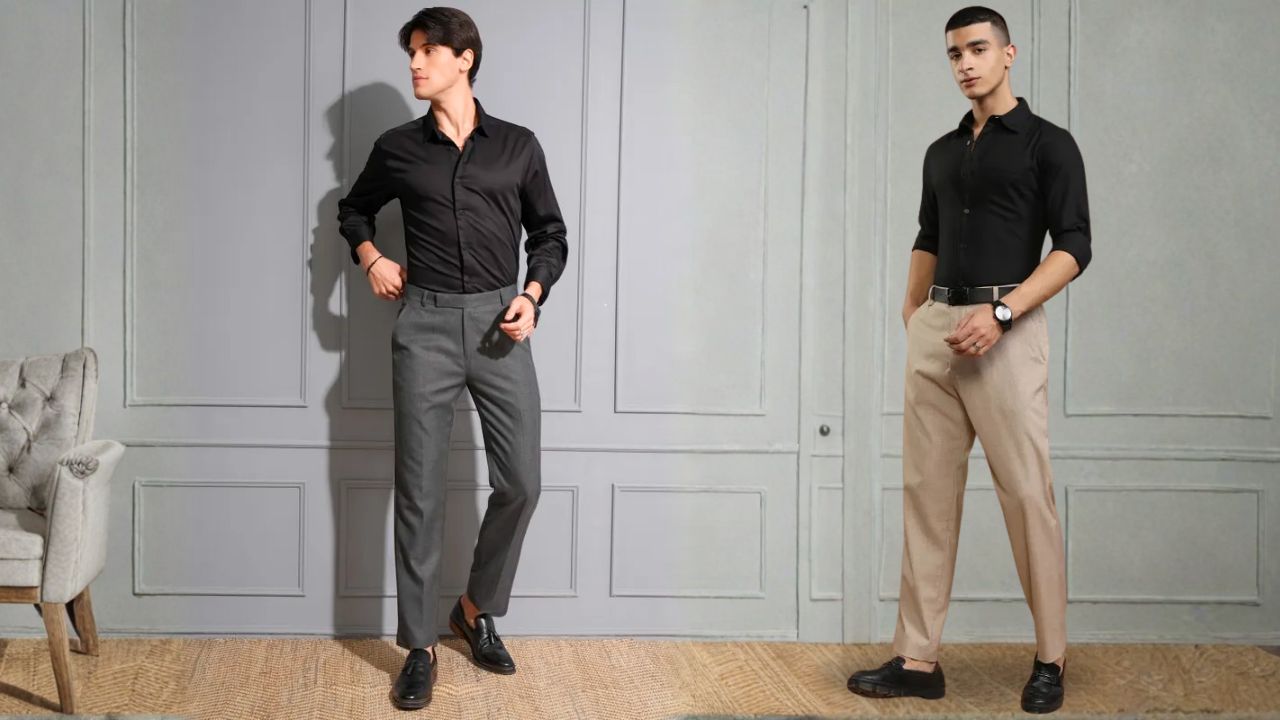 To look sharp and classic, go for a button-down black shirt and pair it with neutral shades like brown, beige, olive, pastel grey, or even washed blue denim for a slightly relaxed yet smart touch. To finish the semi-formal look, add driver shoes or loafers, a black belt, and a sleek watch—this creates a clean, polished appearance that’s perfect for any office setting