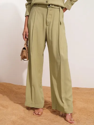 Tokyo Talkies Women Beige Solid Straight Fit Casual Trouser