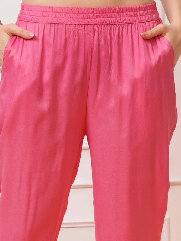 Vishudh Women Pink Printed Kurta With Trouser And Dupatta